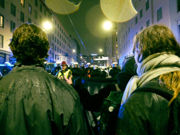 Förutom en virrig nasse som letade sig in i demon, och prompt blev utslängd av folket, var konfrontationen låg. Finland hade samlat polis från hela landet, och lyckades blockera alla ingångsvägar till nazistmarchen. Vi kunde alltså inte hindra dem från att demonstrera, som var vårt mål, men lyckades att försvåra marchens väg—vilket i sig är en vinst.