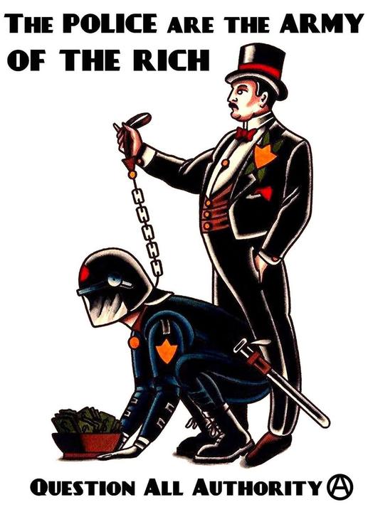 "We must protect ourselves and others from increasingly militarised policing - where chemical weapons, firearms, tasers, etc are in common use against unarmed demonstrators and individuals. At the very least, every demonstrator should carry a baton and everyone should question the authority of the cops. The police are the attack dogs of the state, the army of the rich..."